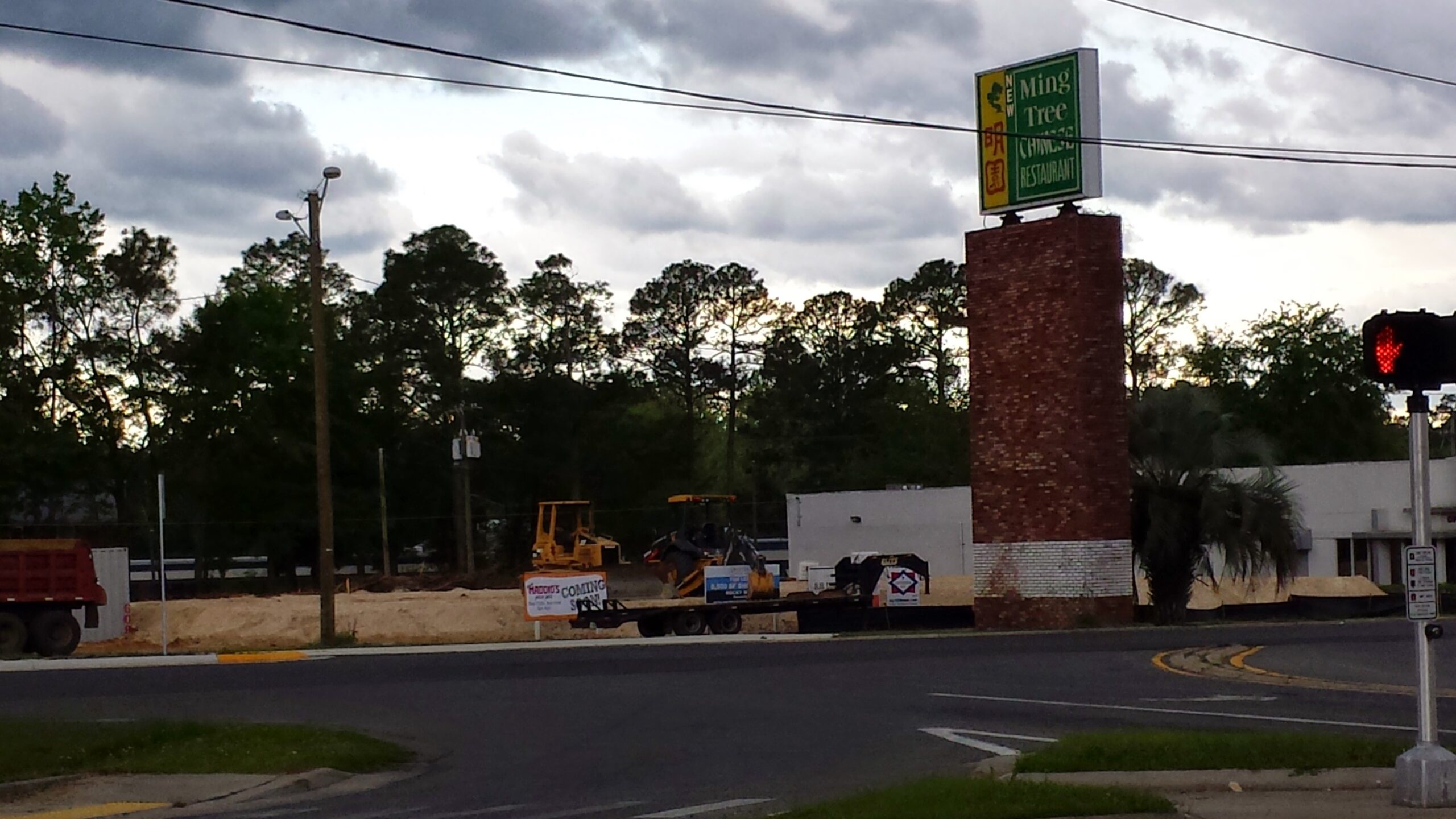 Update from March 30, 2015 – The Ming Tree has been demolished and construction is underway on its replacement, Maddio’s Pizza, plus a few other stores.
