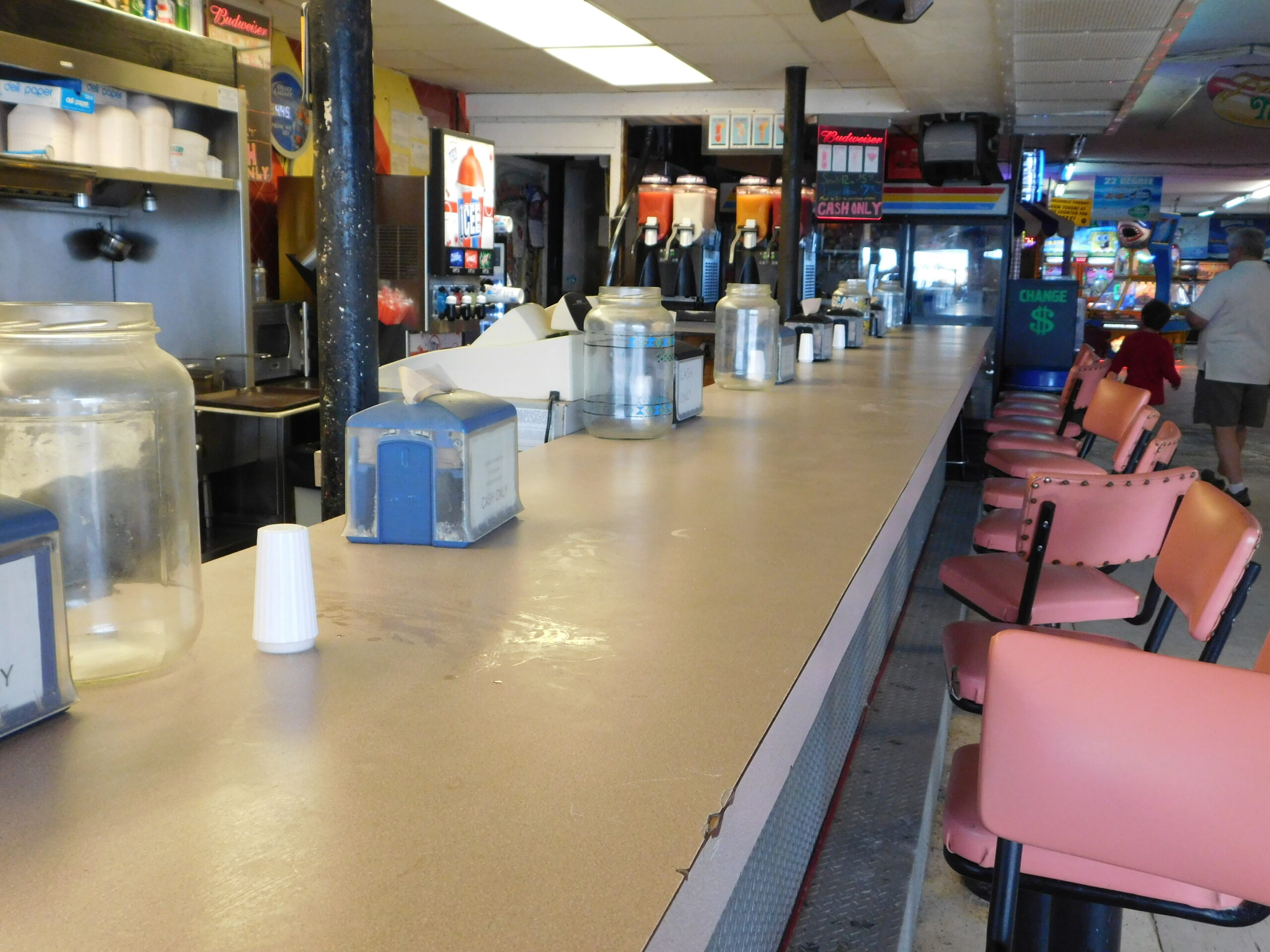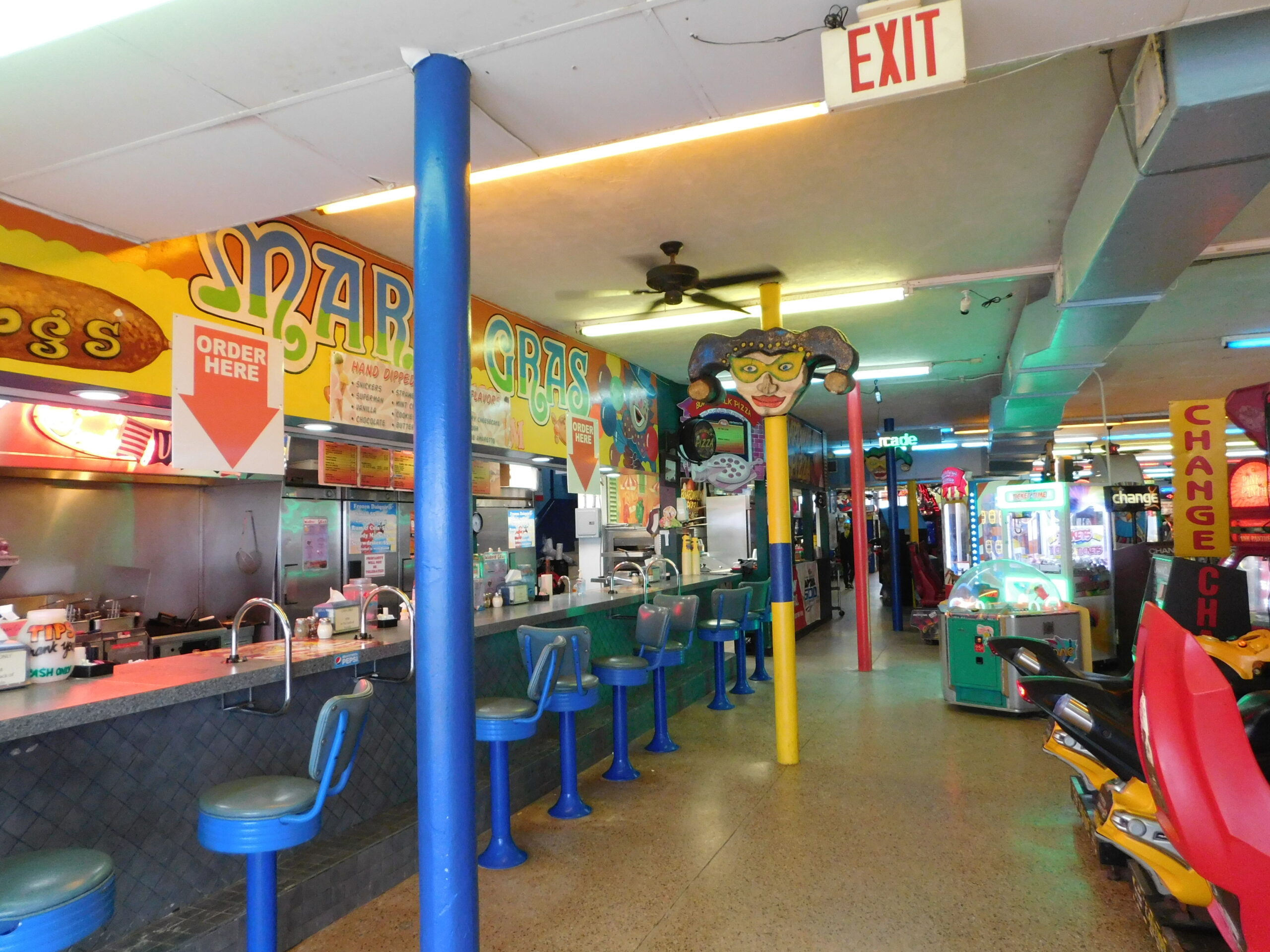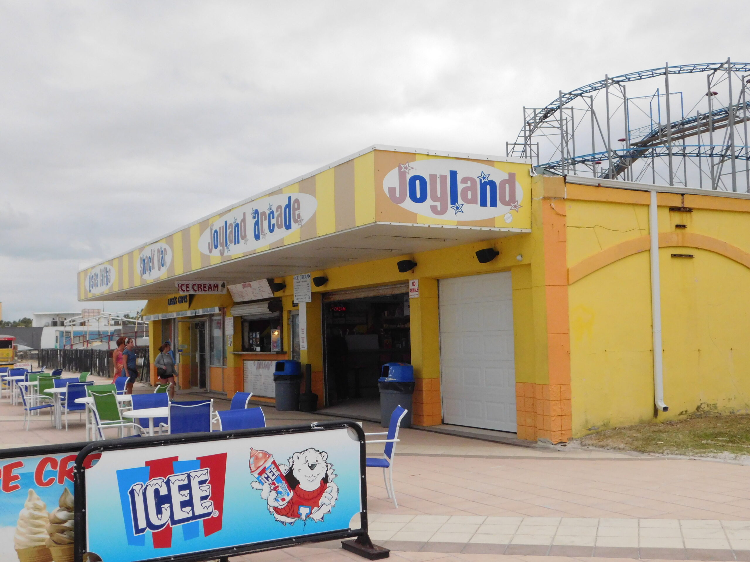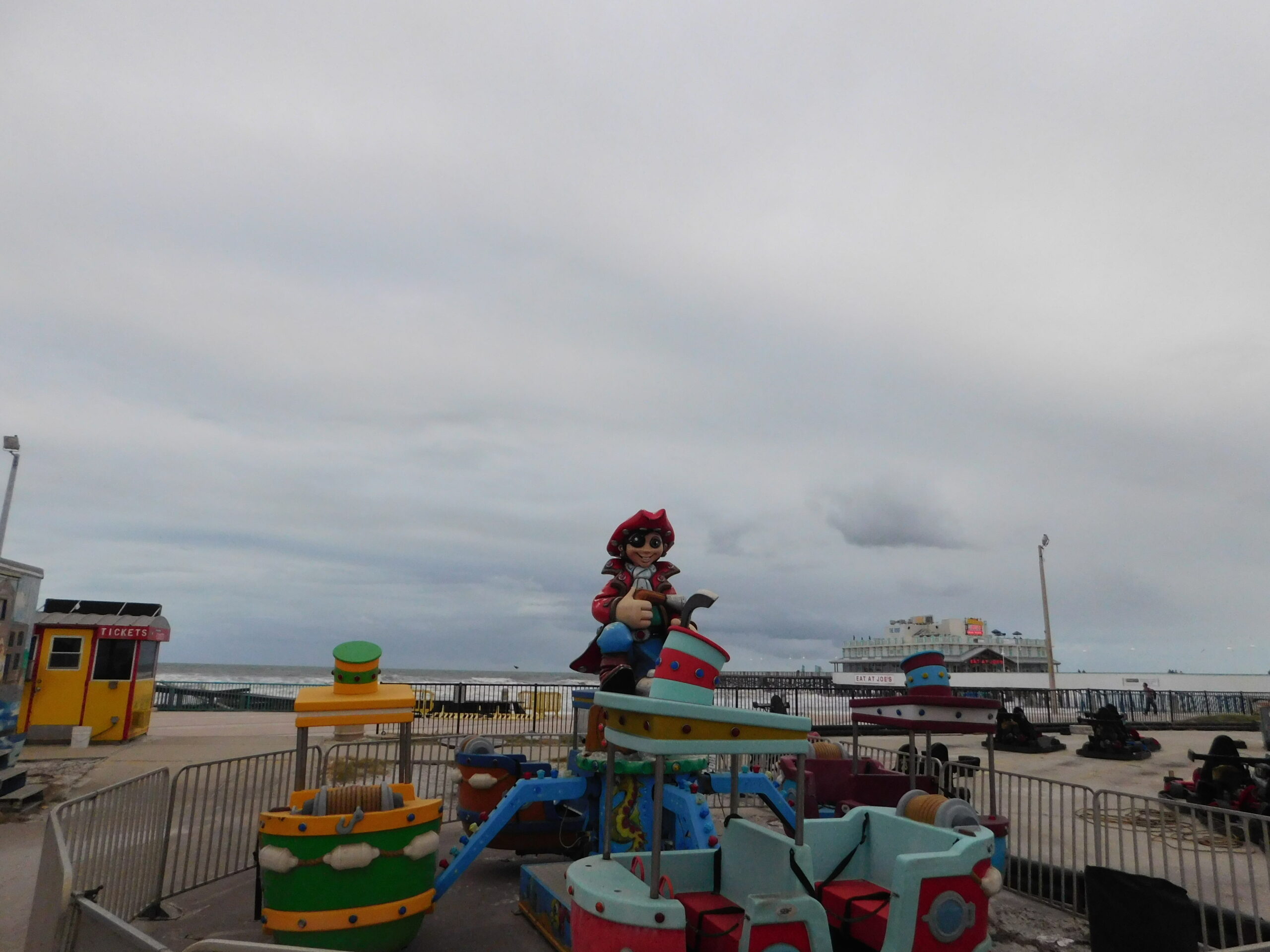 You’d think the older part of the ocean front would fare worse, but then again there’s a reason its the oldest part, right? The only “major” damage Joyland had was some water got into the Skee Ball games, but I was told they needed a good cleaning anyway and would be fully operational again the next day (they were). Mardi Gras had a bit more damage, although only comsmetic: one of the heads was blown off and found a few blocks away. I was told they would be replacing it soon. Aside from more railing damage.