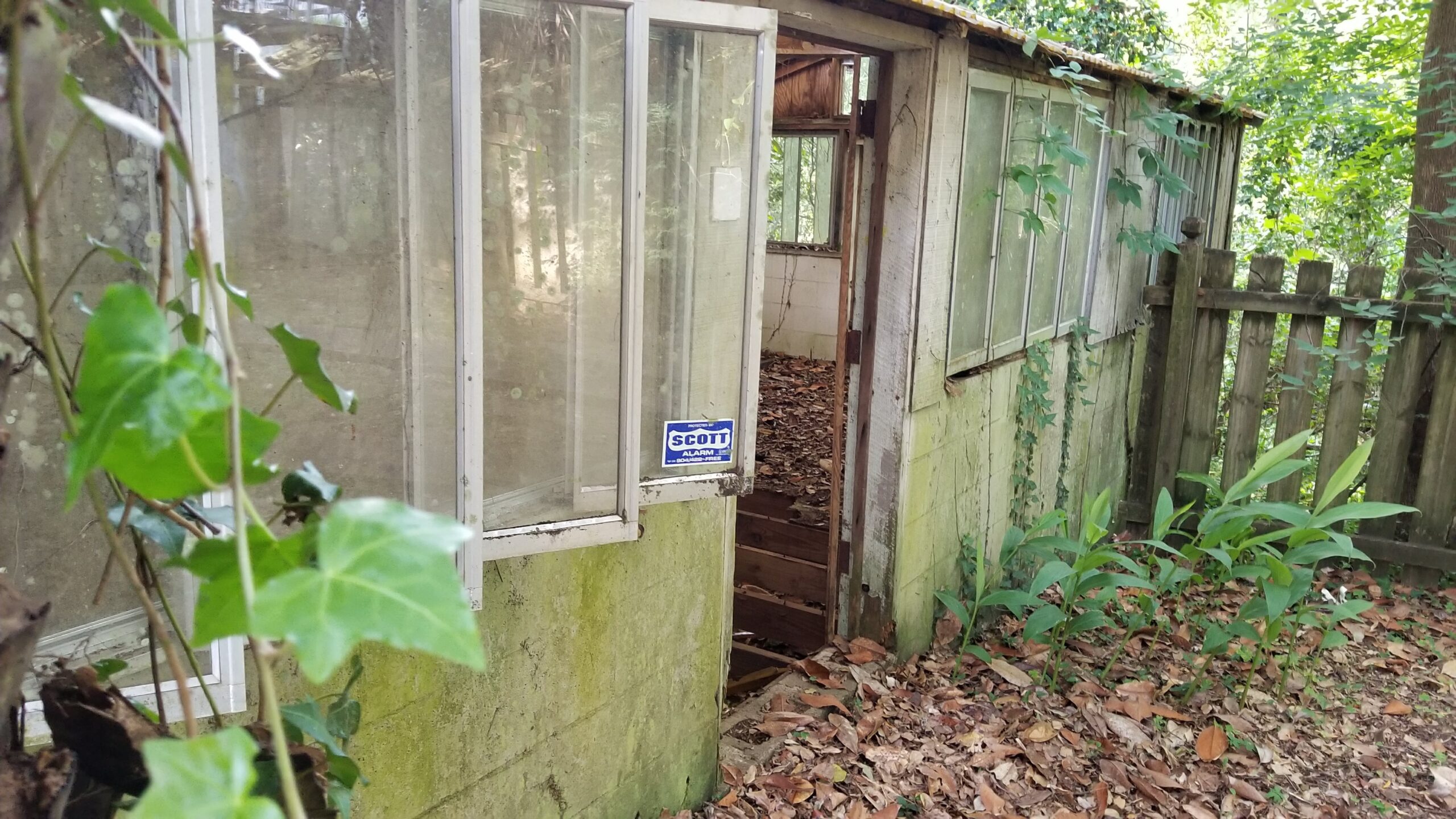 Near one of the dead ends of East Call Street in Tallahassee there’s a nice, small, old-school-type house for sale. And in the back there is a dilapidated garden shed right out of a nice grind-house horror film! You can tell there was probably a very impressive garden area around it, about 70 years ago. Today entire area has been recaptured by nature and I don’t give the shed much time beyond the closing of the house (I certainly wouldn’t keep it…)